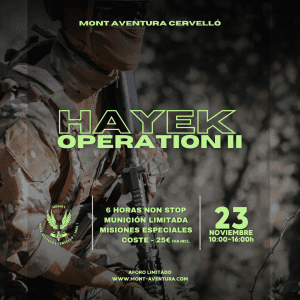 Partida GUIONIZADA con detalles MILSIM de 5 horas. Desde Mont Aventura Cervelló queremos volver a los inicios del Airsoft, donde la modalidad de las partidas eran de carácter realista. Creemos que con los jugadores correctos y una buena organización podemos lograr grandes experiencias en el mundo del Airsoft. Esperamos volver a los inicios donde no hacían falta ni árbitros… dónde el jugador y los equipos tenían un compromiso con desarrollar de la forma más honesta y seria las partidas de Airsoft. Esperamos, con esta partida, ofrecer una experiencia distinta a lo vivido últimamente y con un peso mayor para el jugador en la toma de decisiones.