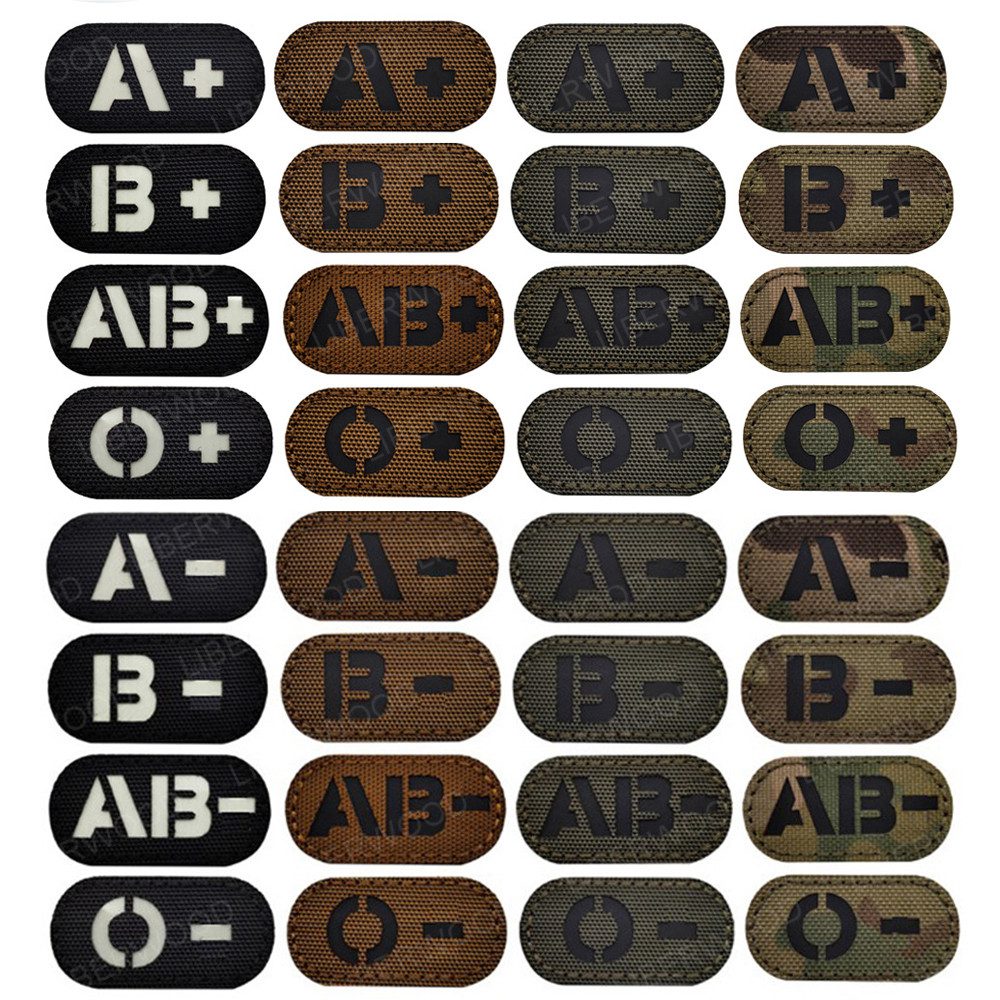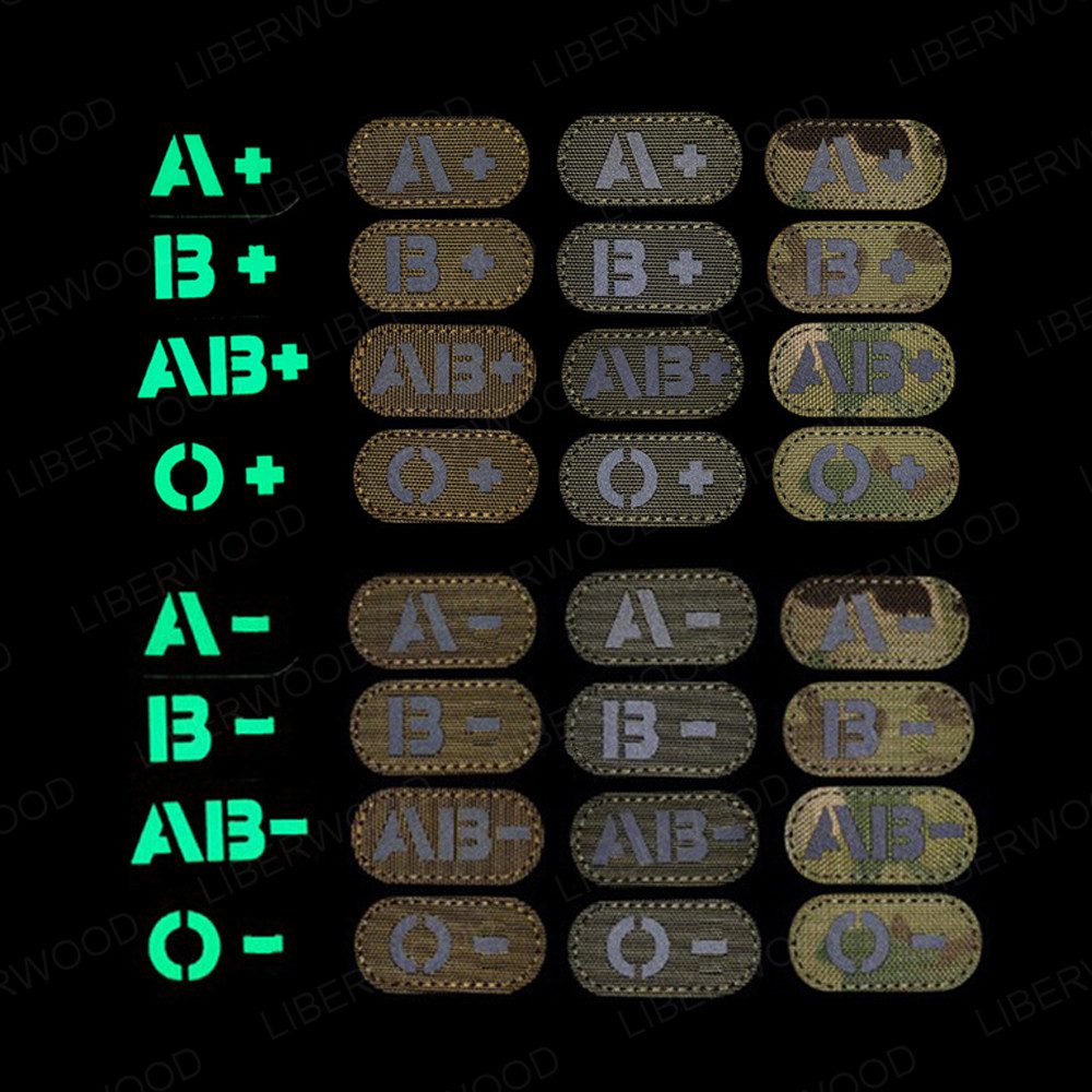Parche infrarrojo reflectante de tipo de sangre A, B O AB, POS positivo, aplicación táctica que brilla en la oscuridad, insignia de bucle de gancho Multicam